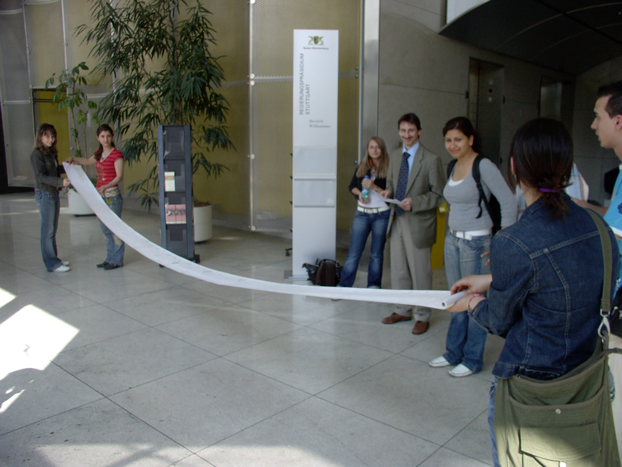und der AK überreichen im Regierungspräsidium Stuttgart eine Fax-Rolle mit 800